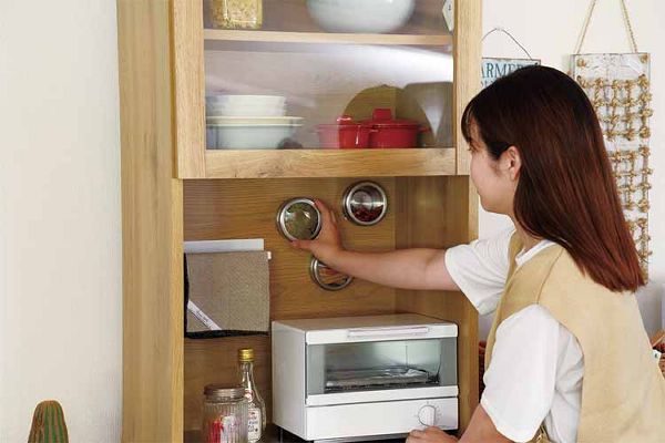 オープン部分マグネット壁、引出し3段レール、2口コンセント、上下連結金具付属