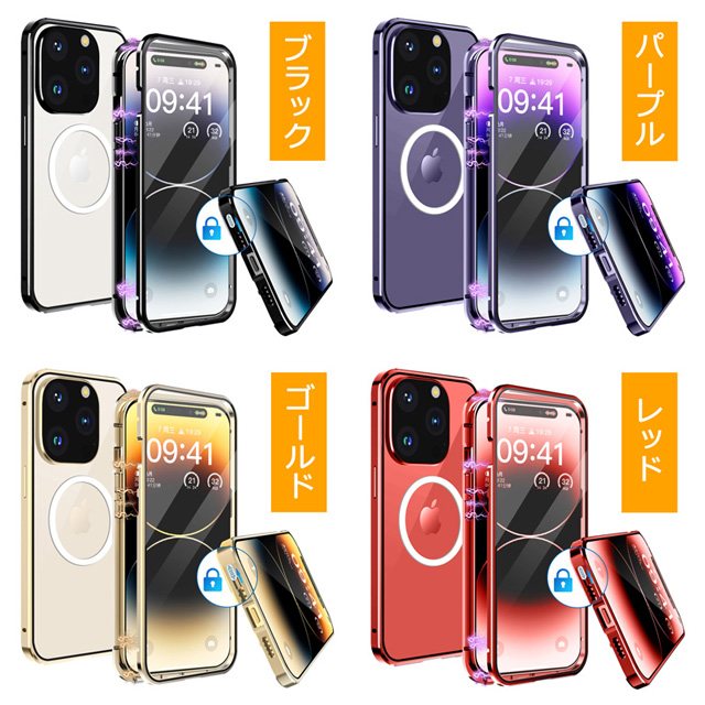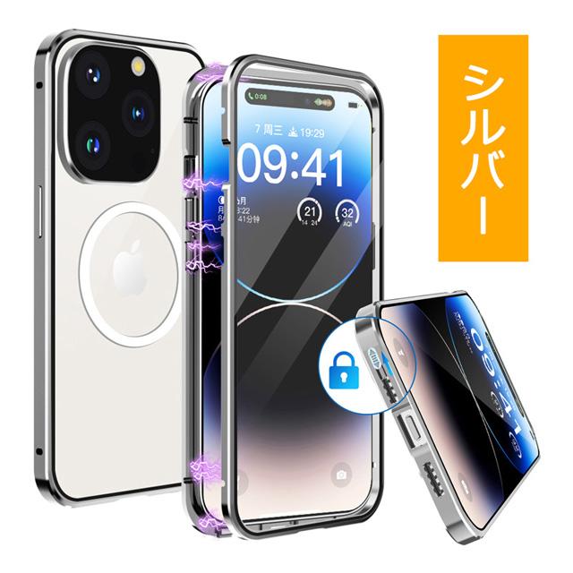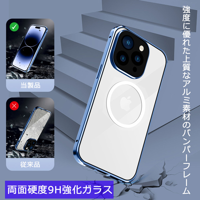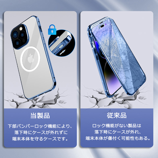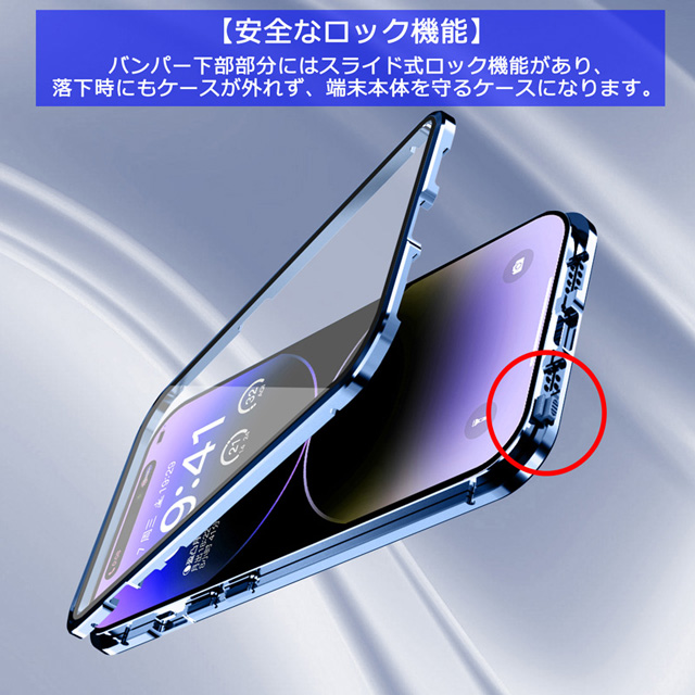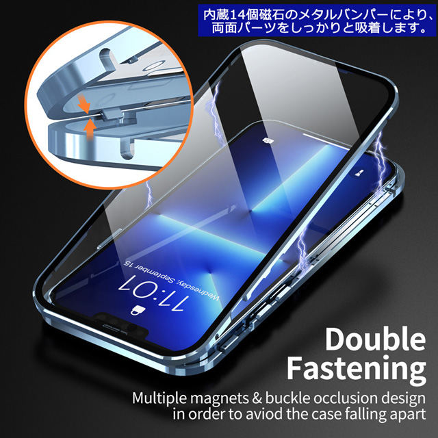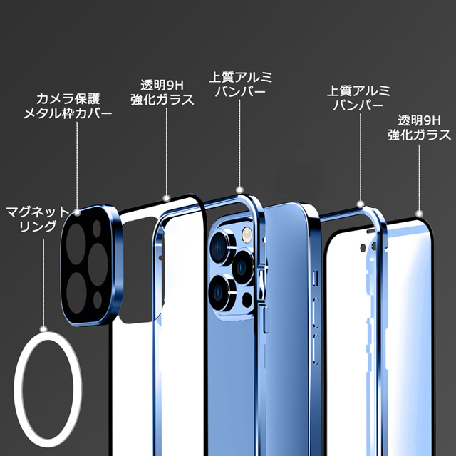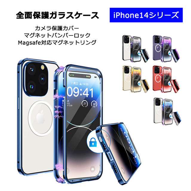 iPhone14 iPhone14Plus iPhone14Pro iPhone14ProMax ケース 両面ガラス マグネットバンパーロック カメラ保護メタル枠プレート Magsafe対応 全面保護 アルミバンパー アイフォン14 アイフォン14プラス アイフォン14プロ アイフォン14プロマックス 透明ケース