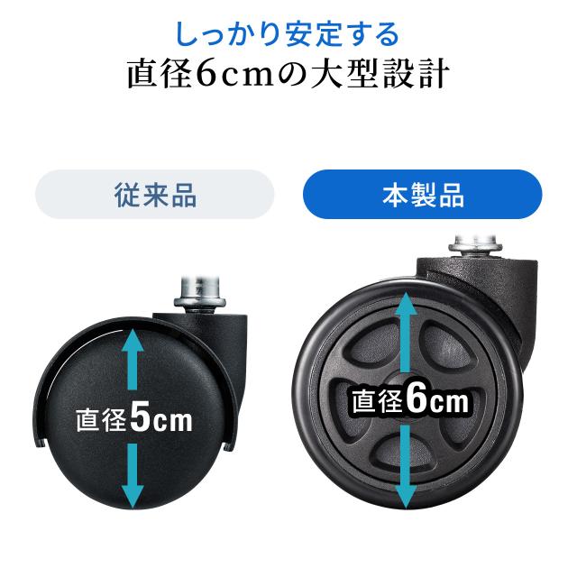 ⇒ご購入の前にご確認下さい適度な柔らかさで床の傷を防ぐゲーミングチェア交換用キャスター。硬質ウレタン製の双輪キャスター。5個セット。直径6cm。ブラック。【WEB限定商品】