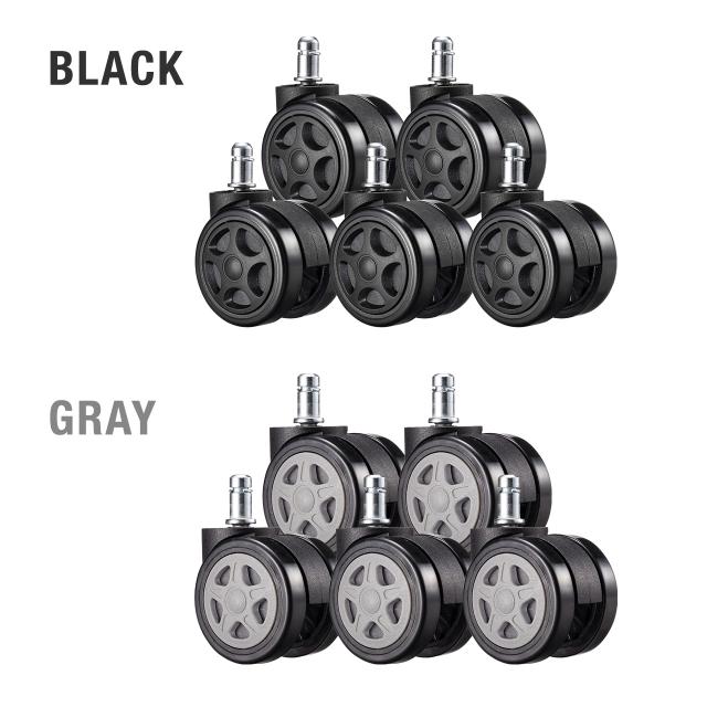 ゲーミングチェア 交換用キャスタ 大型 硬質ウレタン 双輪キャスター 5個入りブラック グレー[150-CAST001]