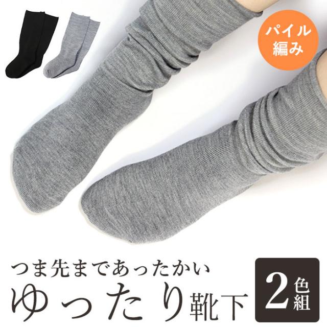 靴下 レディース あったか 暖か 厚手 つま先まであったかいパイルゆったり靴下 2色組 ルームソックス