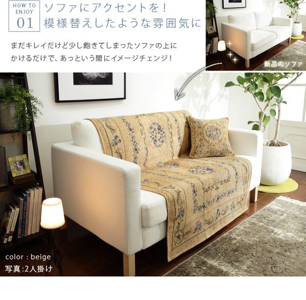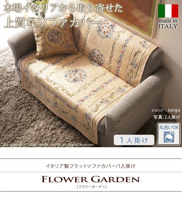 ソファーカバー 1人掛け イタリア製 ジャガード織り ソファカバー フラワーガーデン 1人掛け用 肘なし