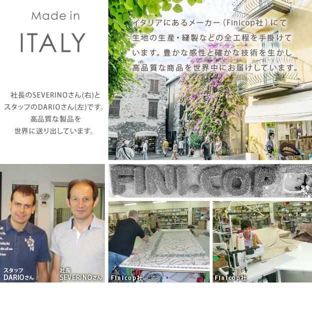●イタリアにあるメーカーにて生地の生産・縫製などの全工程を手がけています。