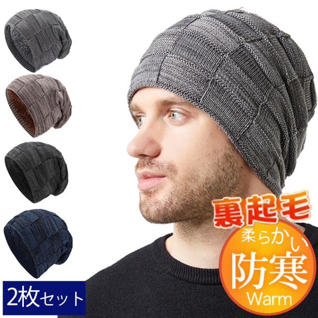 ニット帽 メンズ レディース ニットキャップ 2枚セット 裏起毛 帽子 ビーニー ケア帽子 無地 シンプル 防寒 暖か 軽量 冬