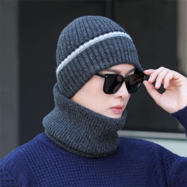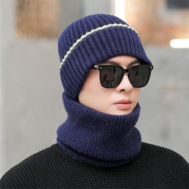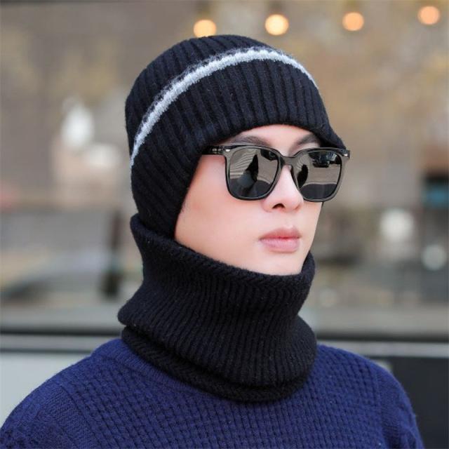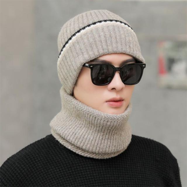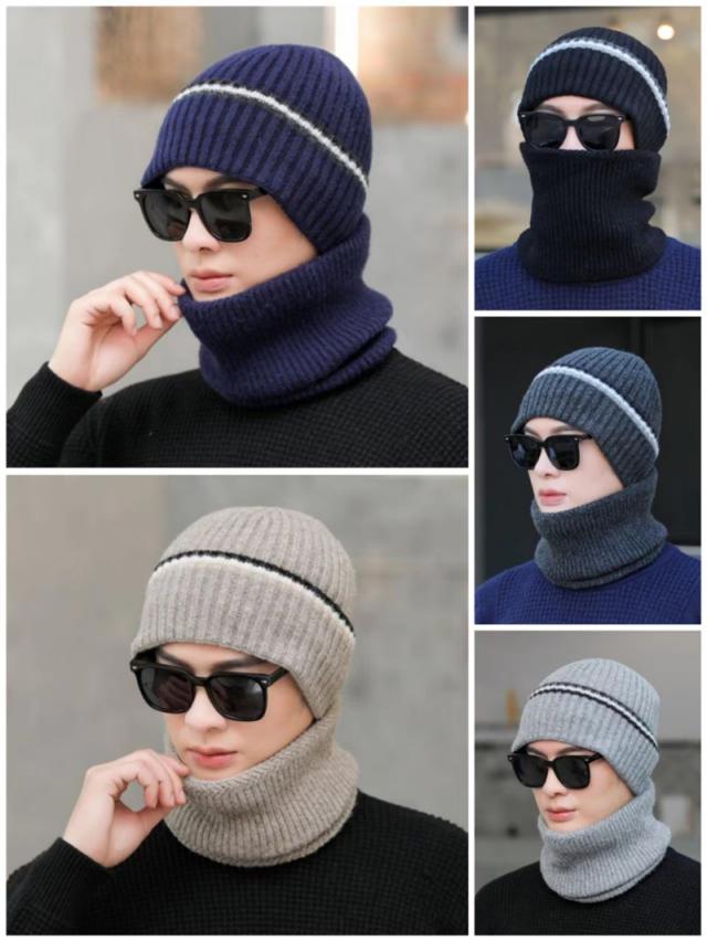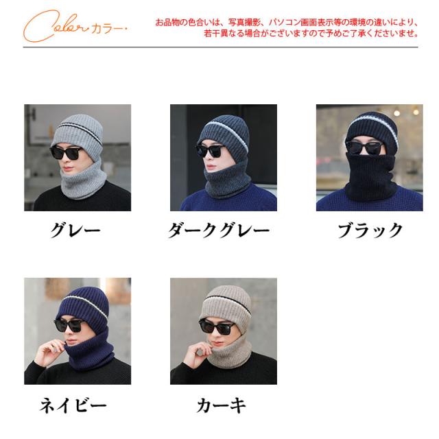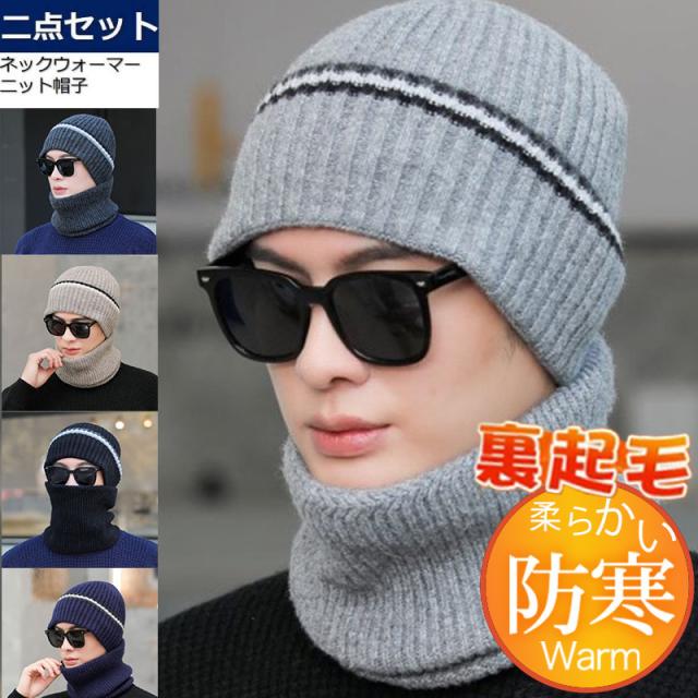 ニット帽 メンズ スヌードマフラー付き 裏起毛 2点セット ニットキャップ マフラー ネックウォーマー ケア帽子 防寒 暖か バイ