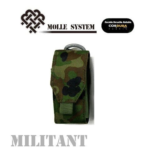 コーデュラナイロン製でハードに使えてガラケーや、ツールの収納に便利なポーチです。モールシステム採用で好みの場所に装着可能です。バックにつけるか、ベストにつけるかお好みでサイド部分はゴムになっており適度なテンションで保持してくれます。商品サイズ:縦12cmx横5cmxマチ2.5cmCORDURA(コーデュラ)とはコーデュラ生地はインビスタ社が特許を取得している繊維ファイバーで、摩擦や引き裂きに強く、過酷な訓練にも耐える優れた生地です。ナイロン の7倍もの強度を持っています。軍用装備の他アウトドア用品、スポーツウエアなど様々な製品に使用されています。MOLLE SYSTEM(モールシステム)とはポーチやアクセサリーを任意で装備でき、多彩なアレンジが可能になります。ウエイビング方式採用で、装備を取り付けるホームへ交互に編み込むことにより強く固定できます。※各国の軍隊や警察でもモールシステムを採用しています。 昨今のミルスペックではグローバルスタンダードになりつつあります。