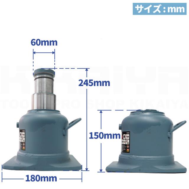 油圧ジャッキ 20トン 低床 コンパクト 150~245mm ボトルジャッキ 建築ジャッキ フォークリフト用ジャッキ ダルマジャッキ トラックジャッキ ミニ油圧ジャッキ KIKAIYA
