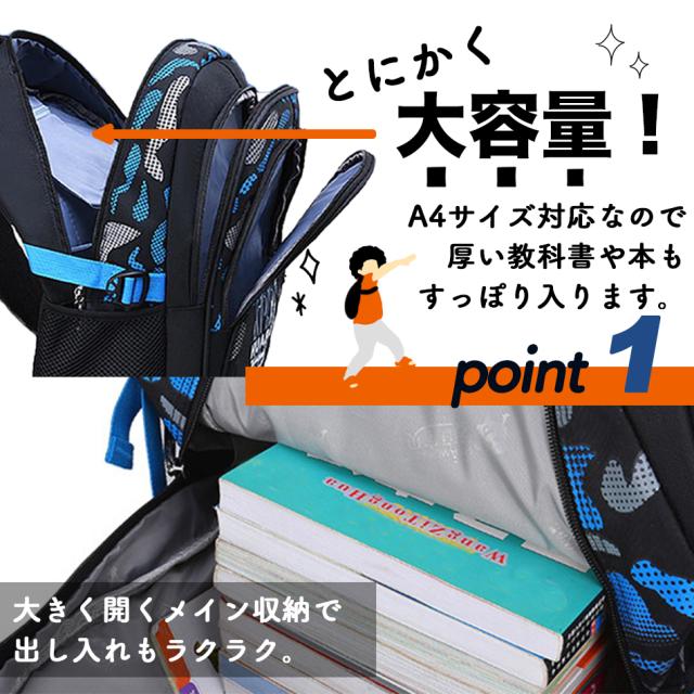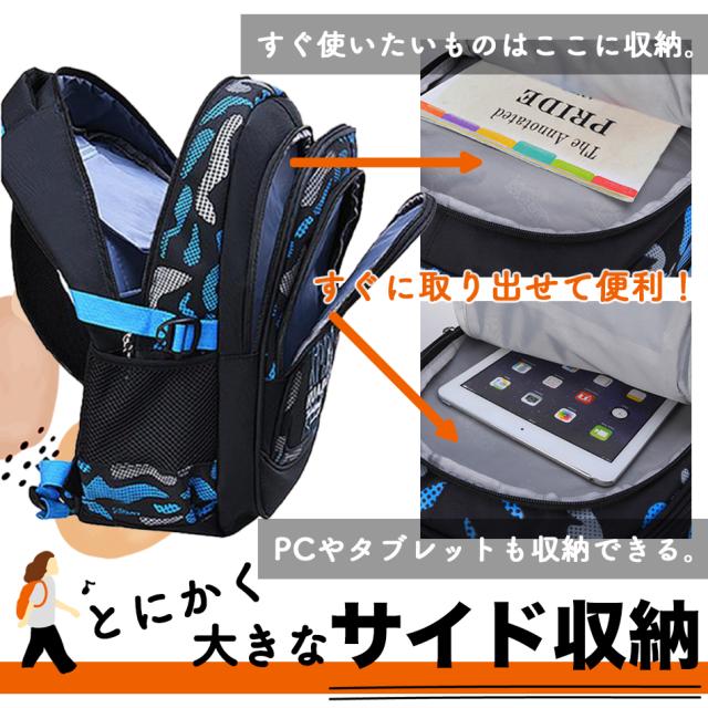 通学、通塾、習い事、野外活動や遠足、旅行など多目的にご利用できます! 荷物が多くなっても、たっぷりと収納することができる大容量サイズ、 たくさんのポケット付きです。