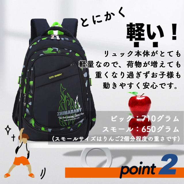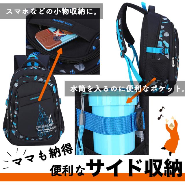 - 小2の息子用に。小柄なのでサイズはスモールサイズでも少し大きめでした。 夏の間はリュック登校可能になったのでこちらを購入しました。 かっこいいって気に入っています。 収納もたくさん付いてるのでなにかと便利です。
