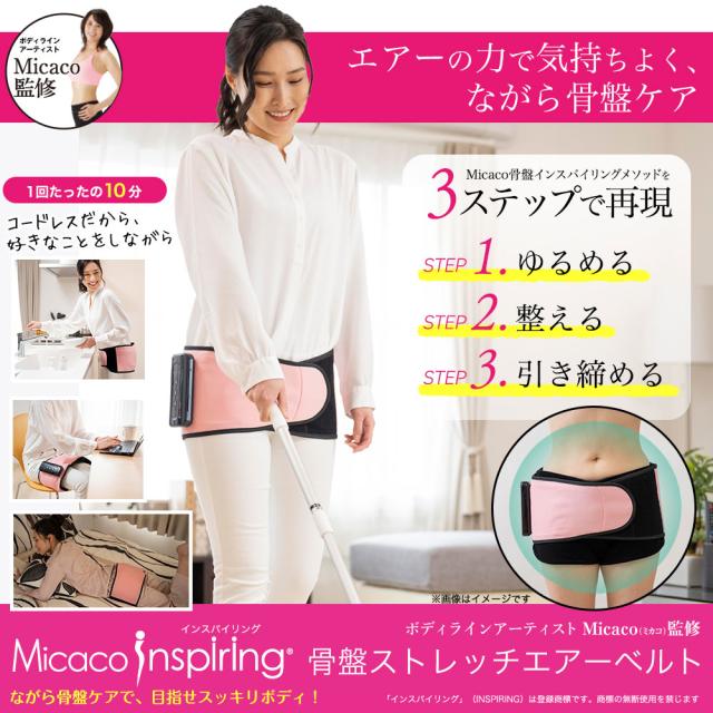 即納・Micaco インスパイリング 骨盤ストレッチエアーベルト ブラック/ピンク ベルト 矯正グッズ Micacoインスパイリング ミカコ 骨盤インスパイリング 引き締め 骨盤矯正 骨盤ケア 骨盤 エアーベルト 矯正 補整 骨盤ベルト 骨盤補正ベルト 骨盤対策 補正ベルト【365】