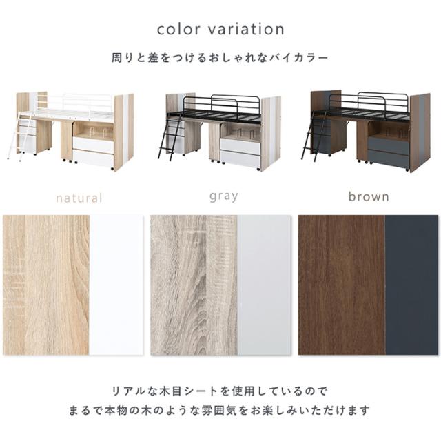 システムベッド ロフトベッド 木製 子供 大人 学習机 ロータイプ 子供部屋 ミドル デスク付き 3点セット シングルベッド シングルベット 学習デスク サイドワゴン ベッド下収納 ベッドガード付 おしゃれ