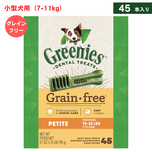 Greenies Grain Free Dental Chews for Dogs, Petite / グリニーズ 犬用 歯磨きガム おやつ [グレインフリー] 小型犬用(7-11kg) 45本入り 穀類不使用