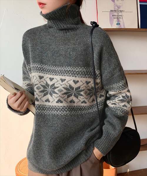 レディース ノルディック柄タートルネックニットセーター