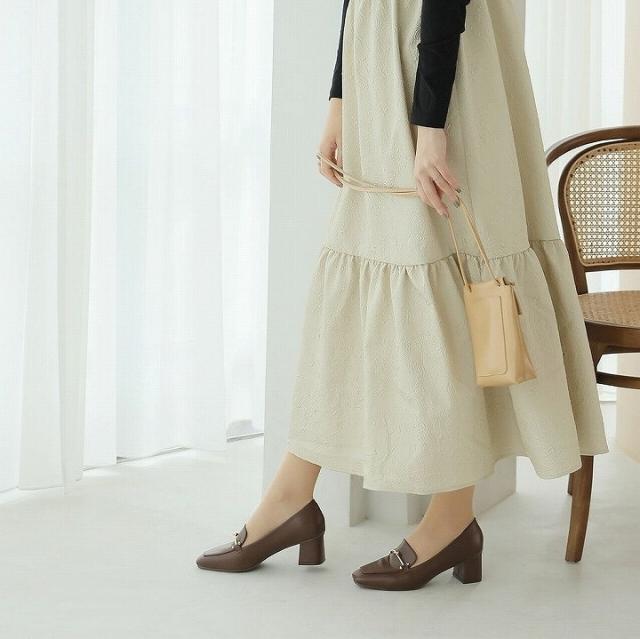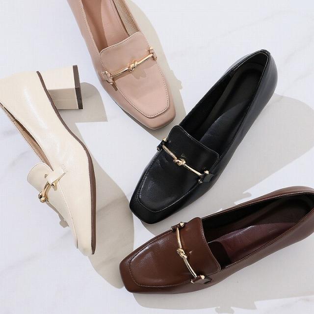 【26春夏新作カラー追加】【SS〜3L】スクエアトゥビット付きローファーパンプス