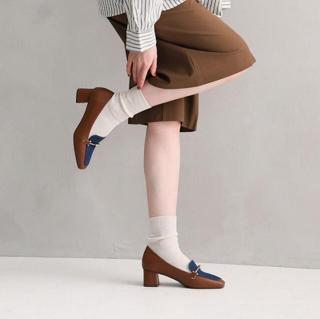・スクエアトゥ×ブロックヒールで甘くなりすぎない上品フォルム。