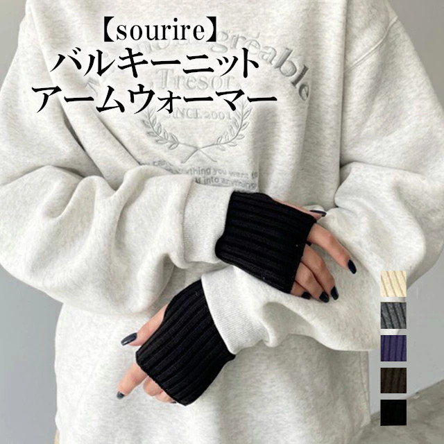 【sourire】バルキーニット アームウォーマー 212-021-4013【アームカバー ニット リブ 指穴 フィンガーレス レディース 防寒 冷え対策 おしゃれ ギフト 母の日 敬老の日 クリスマス Xmas】