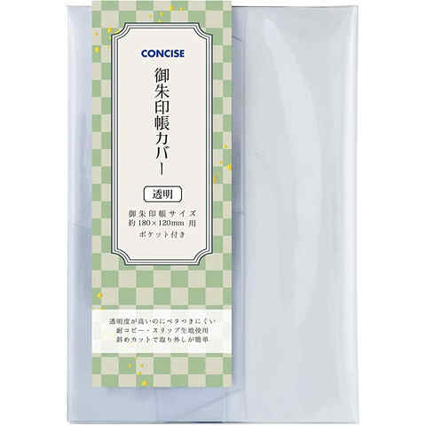 ストア内の商品は全品送料無料です。御朱印サイズのブックカバーです。ポケット付きなので、便利!【カラー】透明【本体サイズ(約)】縦187×横345mm【対応サイズ(約)】[御朱印帳]縦180×横120mm【素材】塩化ビニル樹脂■メーカー: コンサイス