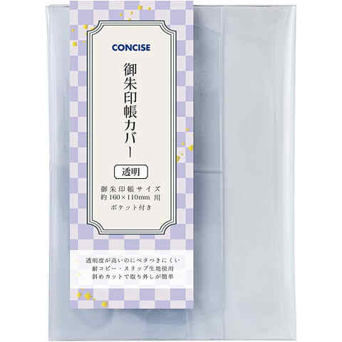 ストア内の商品は全品送料無料です。御朱印サイズのブックカバーです。ポケット付きなので、便利!【カラー】透明【本体サイズ(約)】縦170×横345mm【対応サイズ(約)】[御朱印帳]縦160×横110mm【素材】塩化ビニル樹脂■メーカー: コンサイス