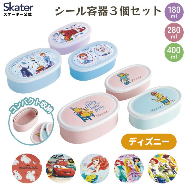 抗菌 シール容器 3個 セット お弁当箱 弁当箱 保存容器 子供 キャラクター ディズニー スケーター skater SRS3SAG【シール 容器 洗いやすい 幼稚園 保育園 日本製 小さめ パッキン無し】