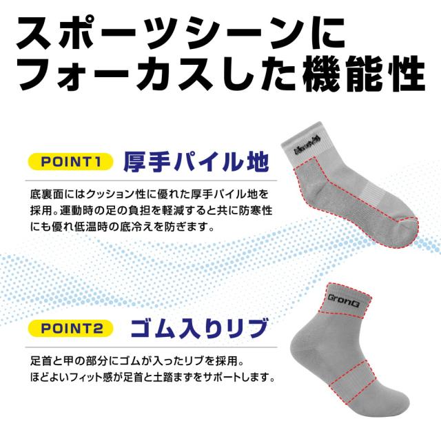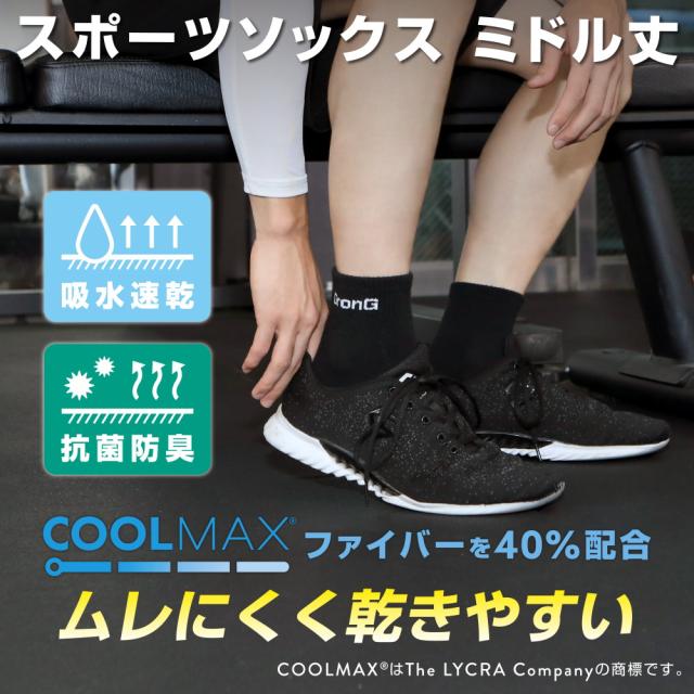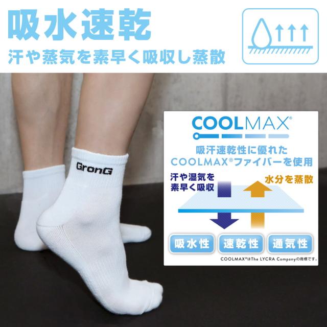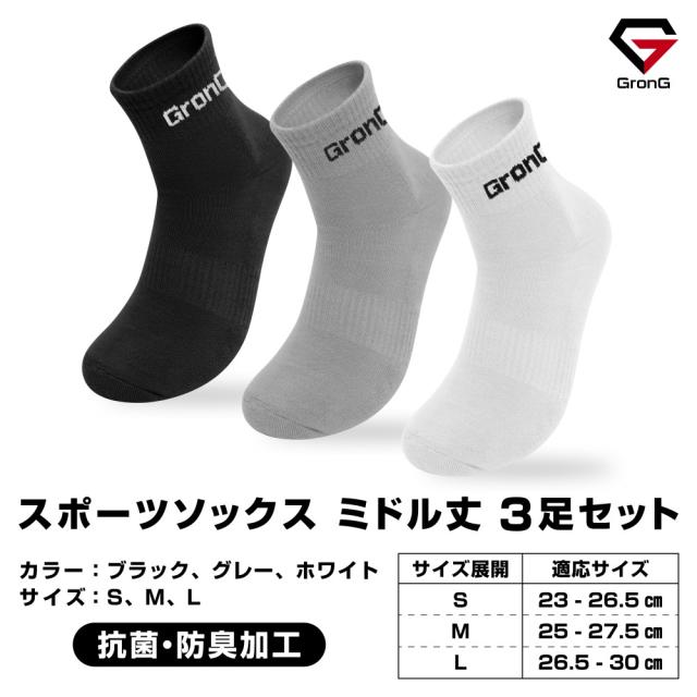グロング GronG スポーツソックス 靴下 ミドル丈 COOLMAX(R)ファイバー配合 吸水速乾 抗菌・防臭加工 3足セット