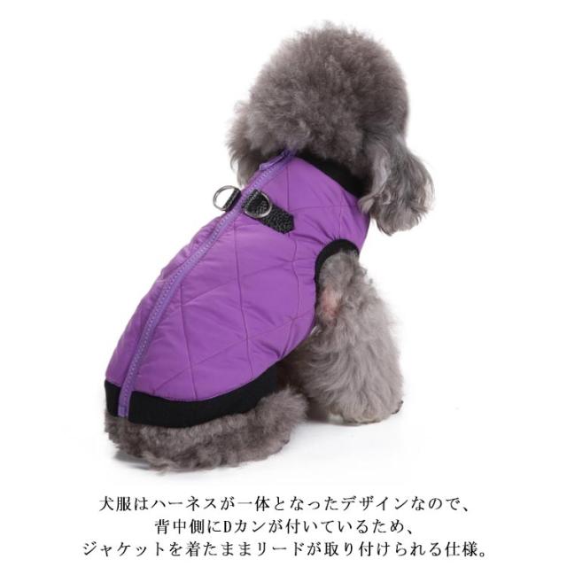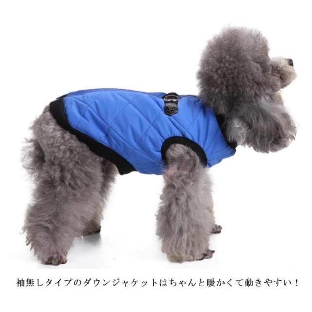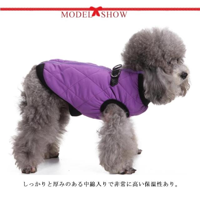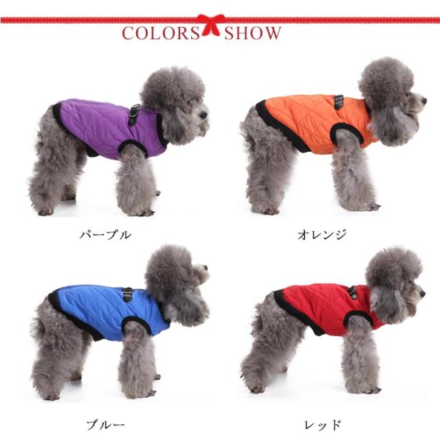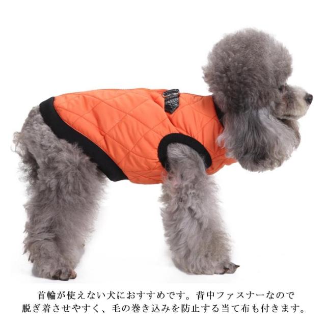 キルティング 【送料無料】ドッグウェア 背中開き 裏起毛なし 冬 ジャケット ベスト 犬服 ハーネス 小型犬 中型犬 冬服 着脱簡単 防寒 軽量 撥水 袖なし 背中ファスナー付き ジャンパー 中綿ジャケット 秋