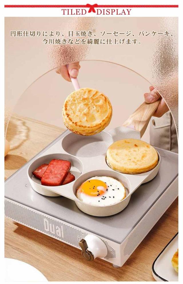 分割 4穴フライパン お弁当 目玉焼きフライパン 四角型 作り 4つ穴円形フライパン マルチパン かわいい くっつかなく 卵焼きフライパン 朝食フライパン 仕切り付き キャラ弁 型 丸い 朝食 ステーキ 焼きおにぎり ガス お手入れ簡単