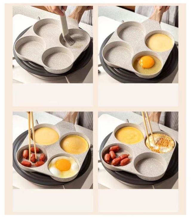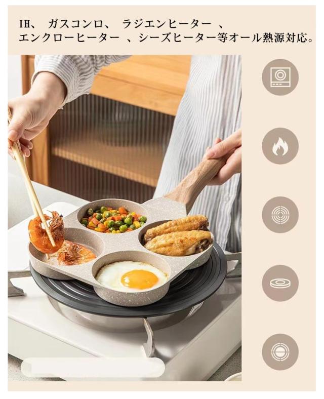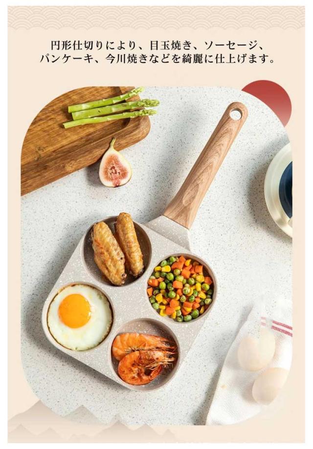卵焼きフライパン 仕切り付き 目玉焼きフライパン 4穴フライパン 大判焼き器 4つ穴円形フライパン マルチパン 四角型 丸い お弁当 朝食フライパン 今川焼き 焼きおにぎり 作り お手入れ簡単 アルミ合金製 キャラ弁 型 パンケーキ
