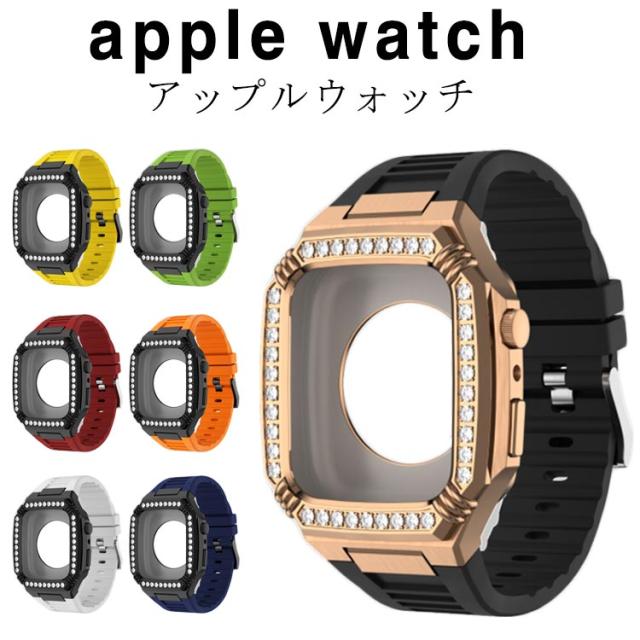 一体型 ベルト watch apple ブラックカバー ステンレス アップルウォッチ カバー ケース バンド 全9色 ラバー 高級ベルト ケースバンド メンズ ベルト ステンレス 44mm 45mm おしゃれ バンド