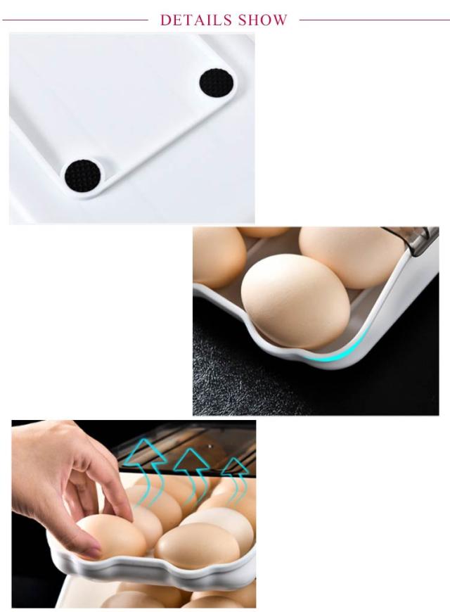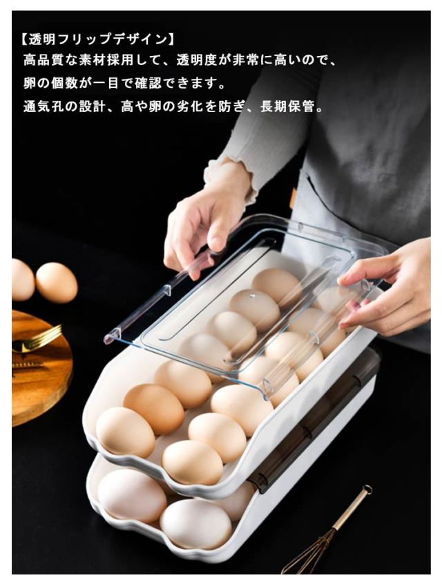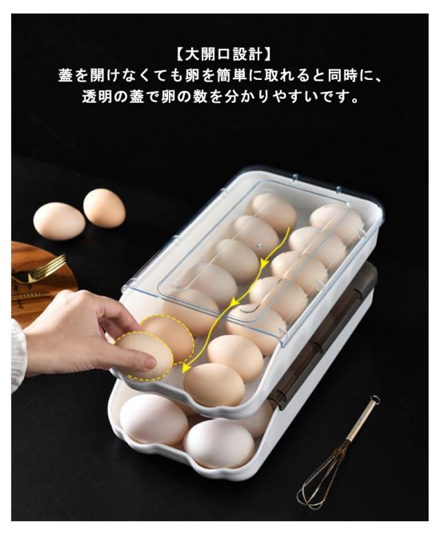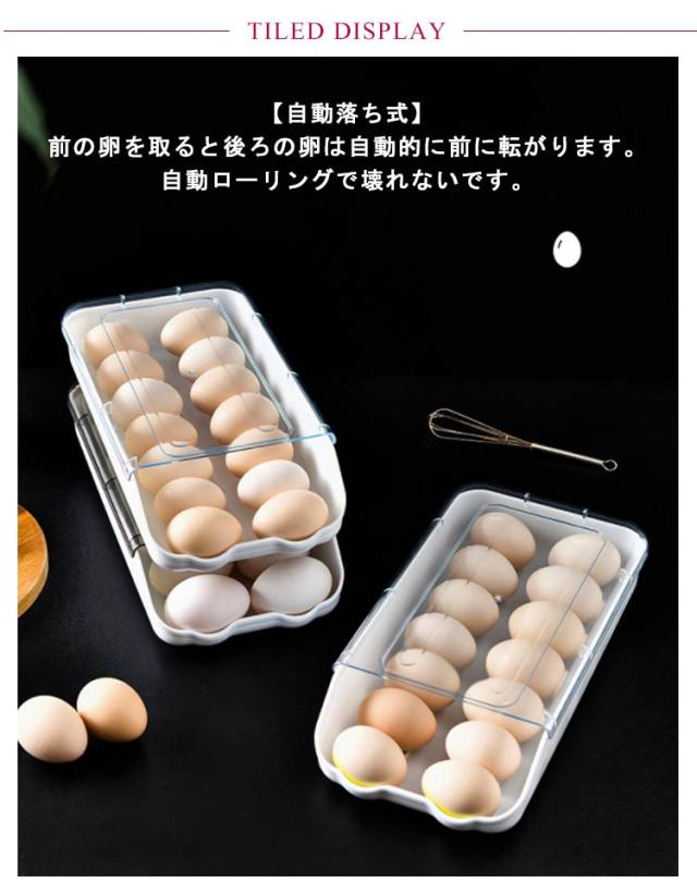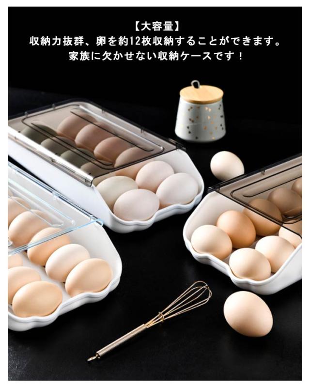 | 【自動落ち式】 前の卵を取ると後ろの卵は自動的に前に転がります。自動ローリングで壊れないです。 【透明フリップデザイン】 高品質な素材採用して、透明度が非常に高いので、卵の個数が一目で確認できます。通気孔の設計、高や卵の劣化を防ぎ、長期保管。 【積み重ね可能省スペース】 蓋付なので、多くタマゴを使用する方においても重ね置きも出来、上に他の物を乗せられるので大変便利に使えます!飲食店、レストランなどにもオススメです! 【清潔でお手入れが簡単】低温で新鮮なことを恐れず、冷蔵庫に入れることができ、保管が簡単で、きちんと整頓されていて、散らかっていません、洗いやすい、長持ちできます。 【大開口設計】 蓋を開けなくても卵を簡単に取れると同時に、透明の蓋で卵の数を分かりやすいです。 【大容量】 収納力抜群、卵を約12枚収納することができます。家族に欠かせない収納ケースです! | |