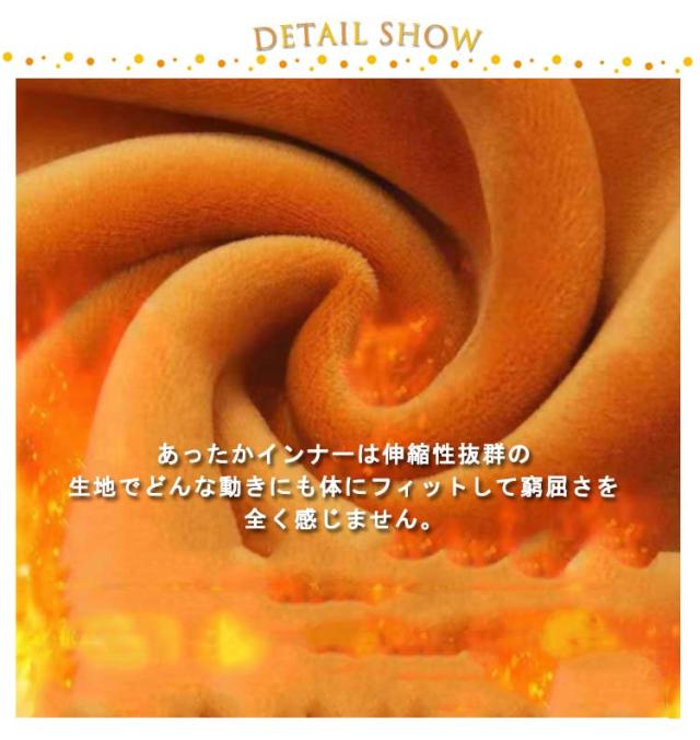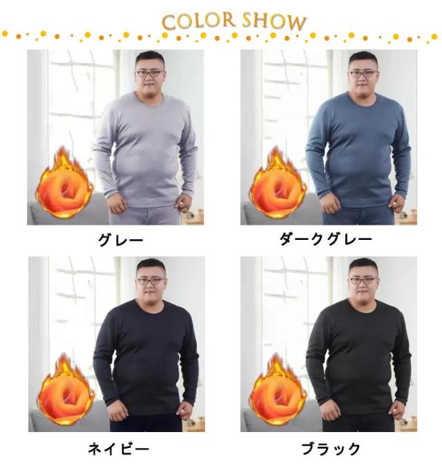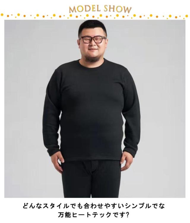 | 裏起毛で極暖かく、着用した瞬間に体がふわふわ暖かくなり、寒い場所と寒い季節に欠けない一品です。3XL-6XL! 内側を裏起毛にすることで、ふんわりとした着心地に。空気を多く含むことができ、保温性にも優れています。 あったかインナーは伸縮性抜群の生地でどんな動きにも体にフィットして窮屈さを全く感じません。 どんなスタイルでも合わせやすいシンプルでな万能ヒートテックです? パジャマ、インナー、など使うシーンは様々、万能にお使いいただけるアイテムです。 | |