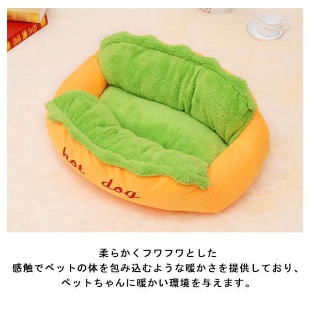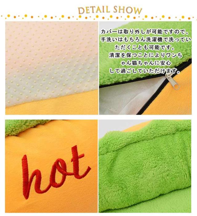 | おもしろいホットドッグ型のボアペットベッド。Mサイズ&Lサイズあり。 柔らかくフワフワとした感触でペットの体を包み込むような暖かさを提供しており、ペットちゃんに暖かい環境を与えます。 中には高級なPP綿を充填し、弾力性があり、ペットの重さをしっかり支えます。圧力を分散するのでペットに圧迫感を与えません。 ペットベッドは全包囲にポリエステル綿をたくさん使用していますので、型崩れしにくく、アゴ乗せもしやすくなっております。 カバーは取り外しが可能ですので、手洗いはもちろん洗濯機で洗っていただくことも可能です。清潔を保つことによりワンちゃん猫ちゃんに安心して過ごしていただけます。 噛み癖爪とぎ癖のあるワンちゃん猫ちゃんでも破れにくく壊れにくい素材のため、長年愛用していただけます。 | |