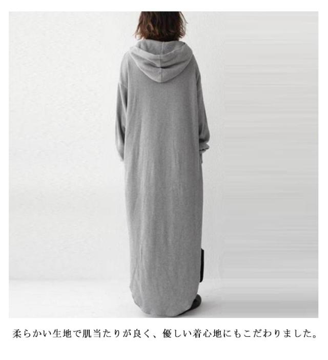 | トレンド感のあるハーフジップディテールが特徴の、マキシ丈スウェットワンピース。 ボディラインを拾いにくいゆったりシルエットで、リラクシーな着心地が叶う1着。 程よくゆとりのある袖デザインで、プッシュアップした際もさまになります。 柔らかい生地で肌当たりが良く、優しい着心地にもこだわりました。 超長い丈感で足元まで暖かく、冬のコーディネートにぴったり。 シンプルながらも、1枚でコーディネートがきまるマキシワンピースです。 | |