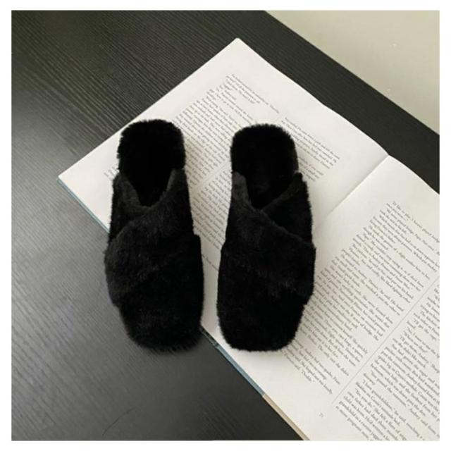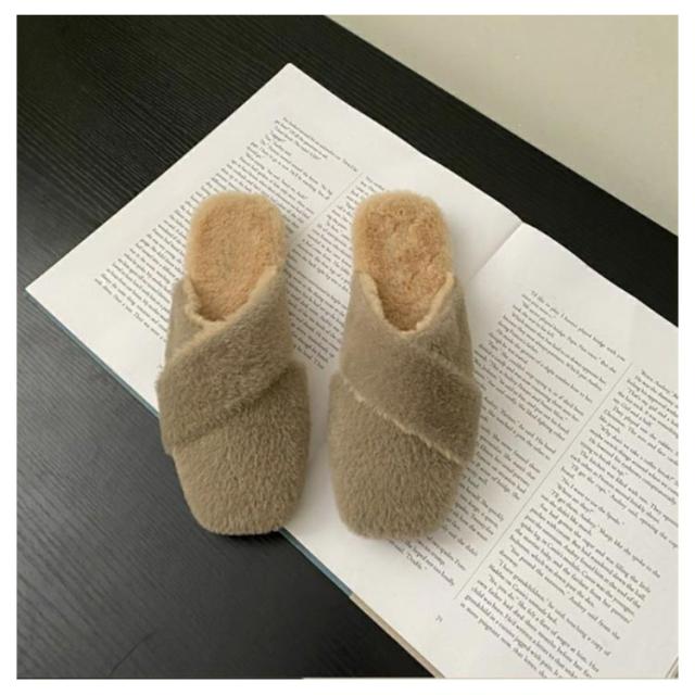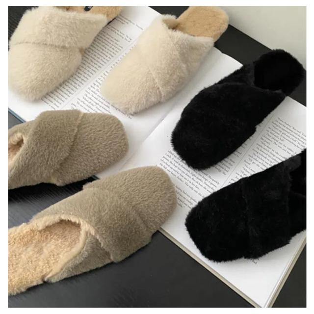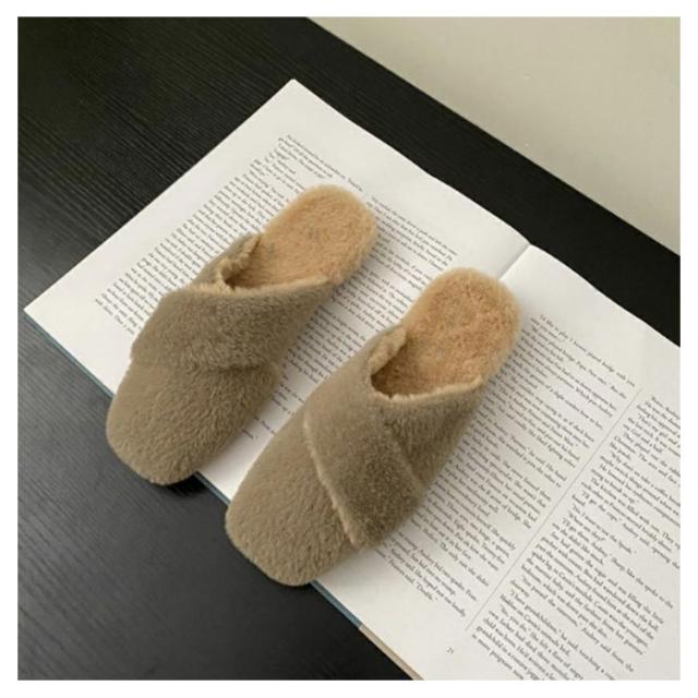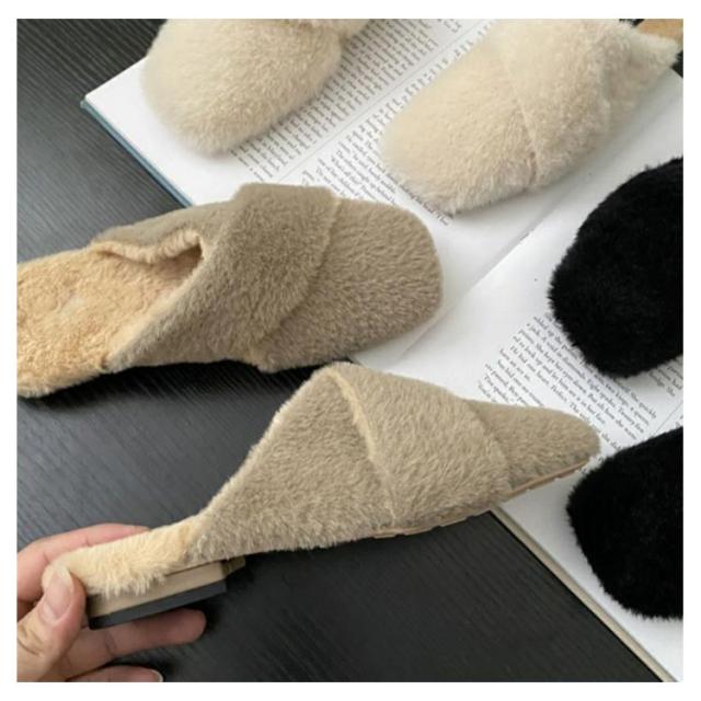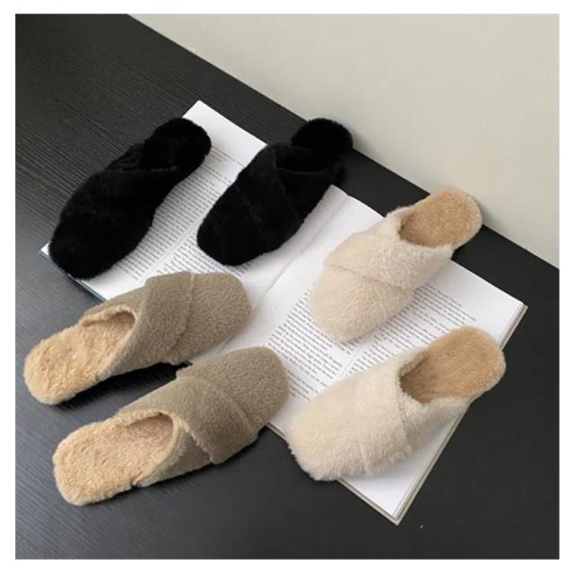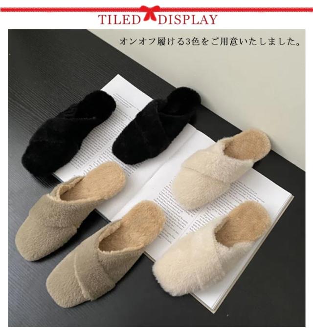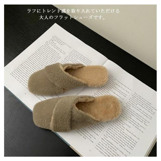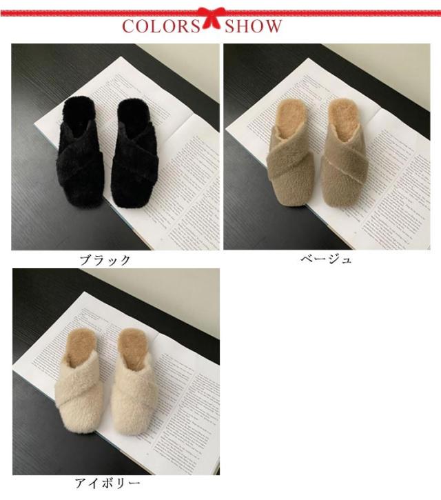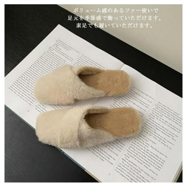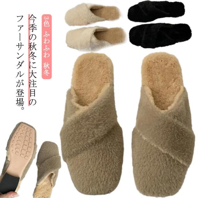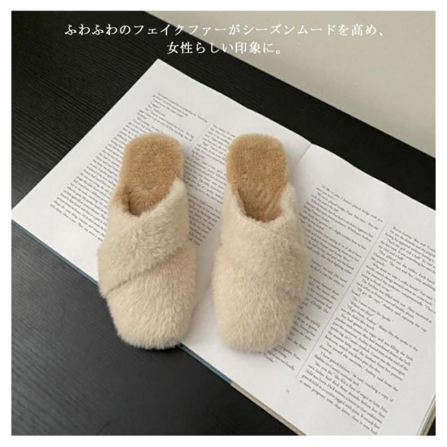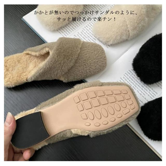 ミュール レディース サボサンダル ミュール お仕事 サンダル 秋冬 ファー付き あったかスリッパ ルームシューズ もこもこ ふわふわ ファーサンダル フェイクファー スリッパ 室内履き 事務所 フラットソール