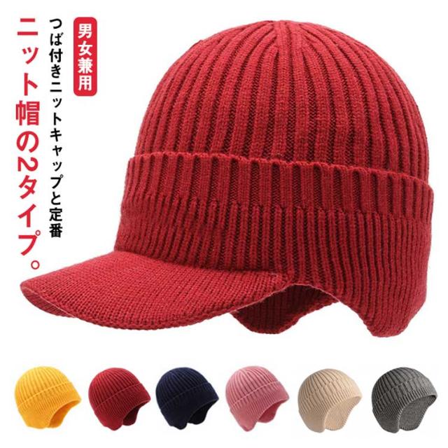 ワークキャップ ニット帽 ニットキャップ 寒さ対策 帽子 無地 キャスケット つば付き レディース 男女兼用 冬 ツバ付き 冬用 メンズ 耳あて付き 2タイプあり ニット帽子 防寒 ぼうし スノボ おしゃれ シンプル 秋