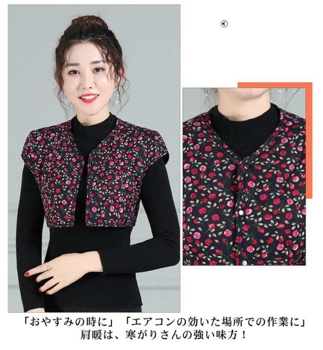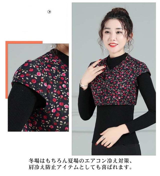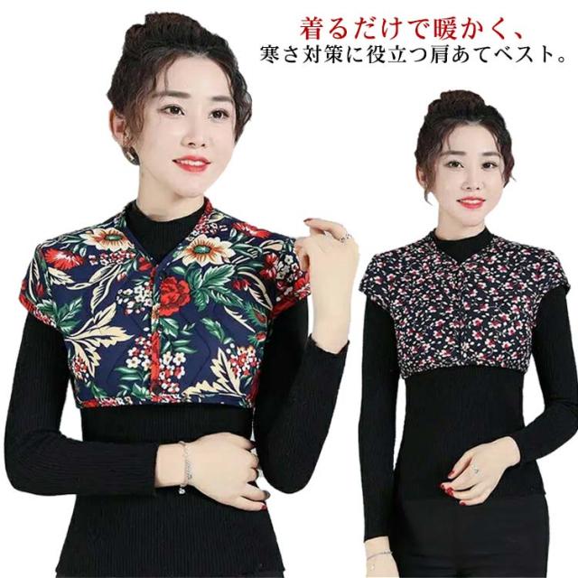 肩当て 送料無料 花柄 キルティングベスト 肩掛け 肩サポーター 肩あて レイヤード あったかインナー あったか レオパード 重ね着 ショートベスト 就寝 肩ウォーマー 肩冷え防止 部屋着 ルームウェア 女性用 冷房対策 冷え 温活