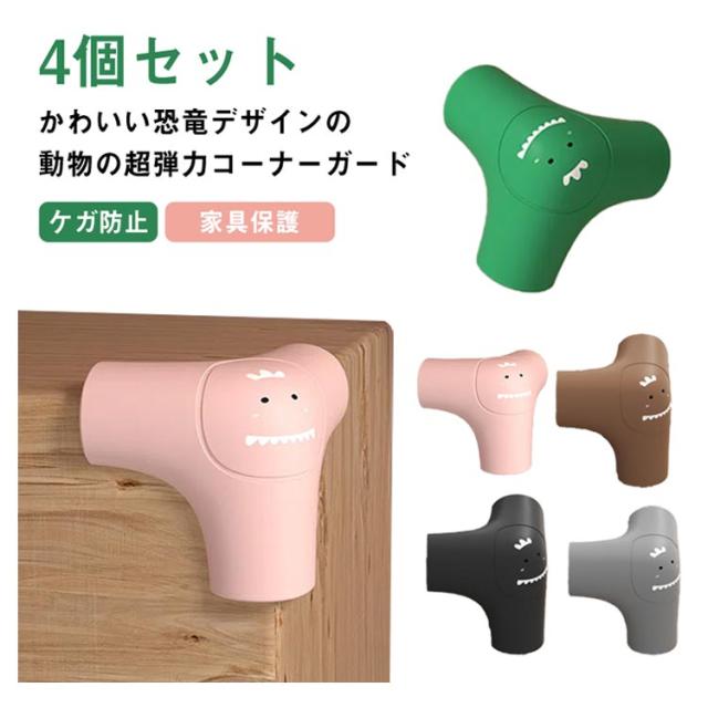 | かわいい恐竜デザインの動物の超弾力コーナーガード。4個セット 両面テープ仕様でテレビ台やテーブルなどの角に簡単に取付可能。 衝撃を吸収し、不意にぶつかった時の安全対策におすすめ。 かわいいデザインで子供達も喜んでます! | |