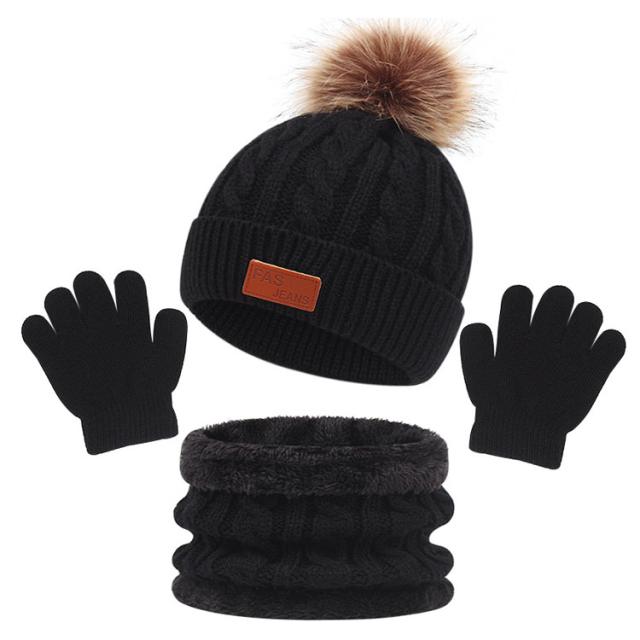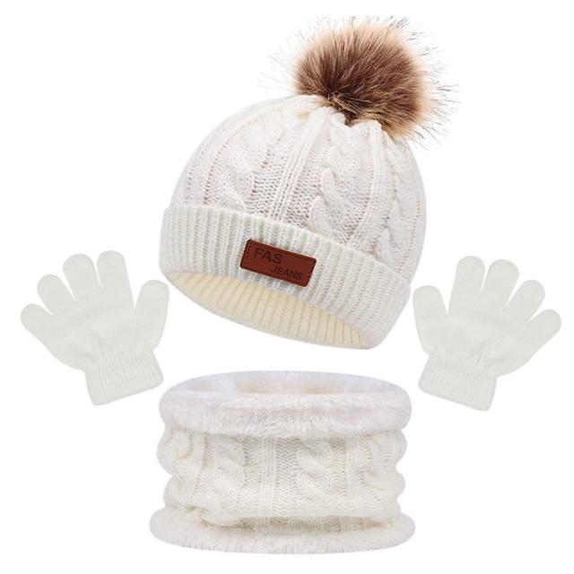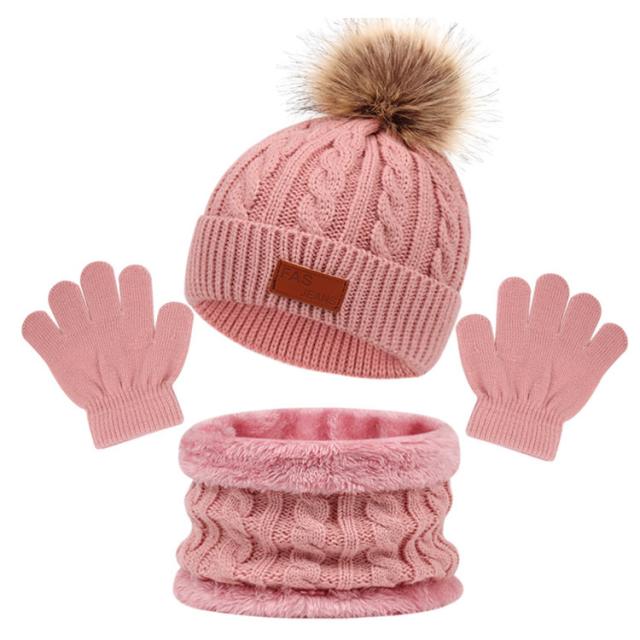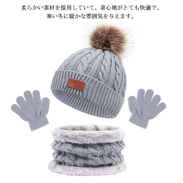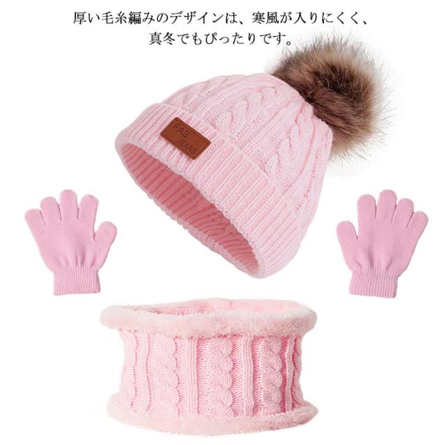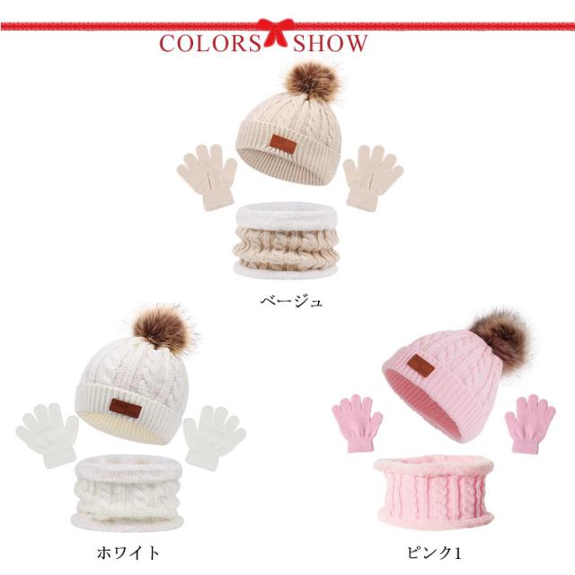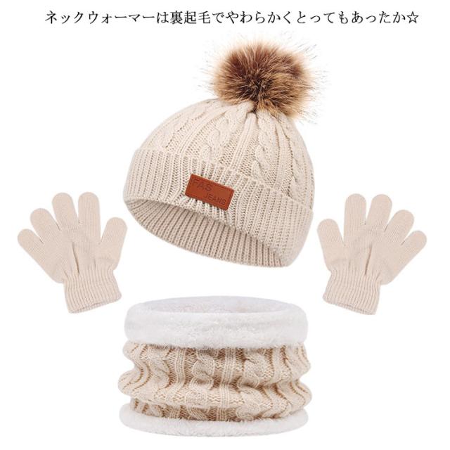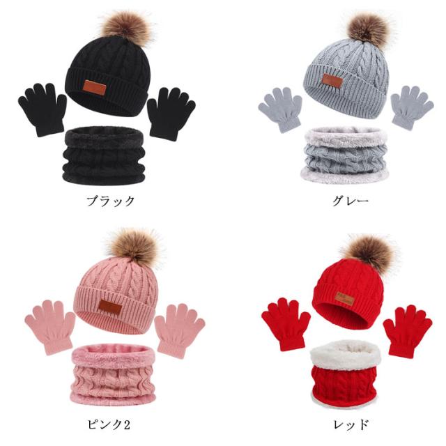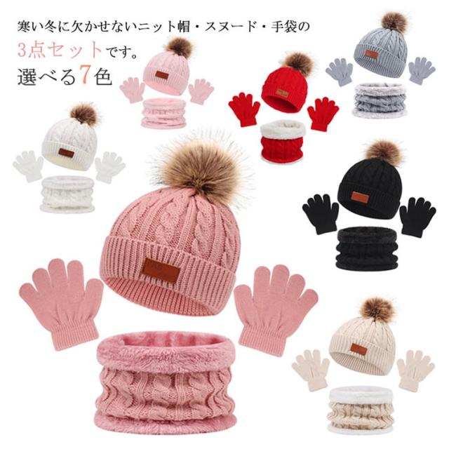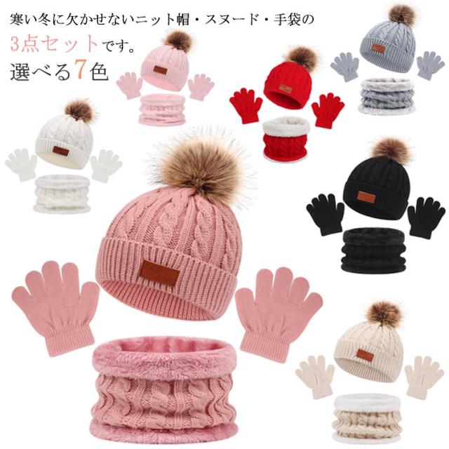 スヌード ニット帽 子供用 グローブ キッズ マフラー 冬 手袋 秋 帽子 男の子 【3点セット】 子ども ニットキャップ ネックウォーマー ワッチキャップ ポンポン付き 裏起毛 ベビー 幼児 防寒 あったか 女の子