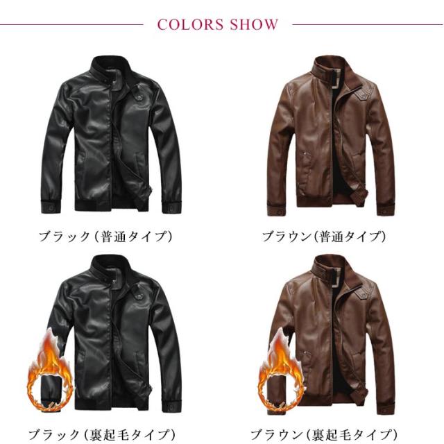 | クラシックでありながらも、機能も豊富、立ち襟デザイン、防風、保温機能が高まり、秋と冬に最適レザージャケット。 生地はすべすべとした優しい手触りの気持ち良い。 雨や汚れに強く、扱いが簡単、肌触りも非常にソフトで柔らかく体を包み込んでくれる。 薄手タイプと裏起毛タイプからお選びいただけます。 通勤?通学などビジネスから、フォーマル?カジュアルまで、全てのスタイルが満足できます! | |