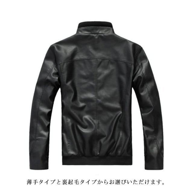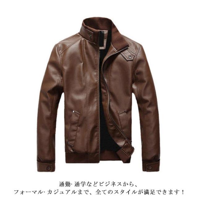 冬服 ブルゾン フェイクレザー レザージャケット お洒落 ジャケット 革ジャン 裏起毛 ライダースジャケット アウター 秋冬物 着痩せ ファスナーポケット 大きいサイズ 送料無料 立ち襟 メンズ