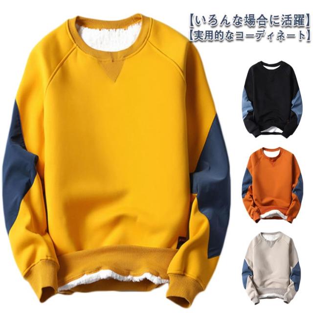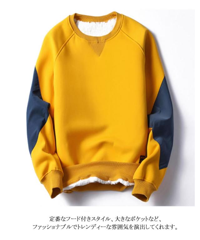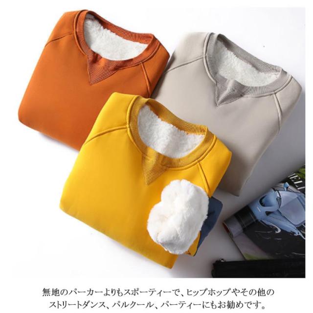 トレーナー 韓国 パーカー レディース メンズ 大きいサイズ 冬 プルオーバー 裏ボア お洒落 ボア あったか 防寒 無地 厚手 切替 長袖 クルーネック 秋冬物 裏起毛