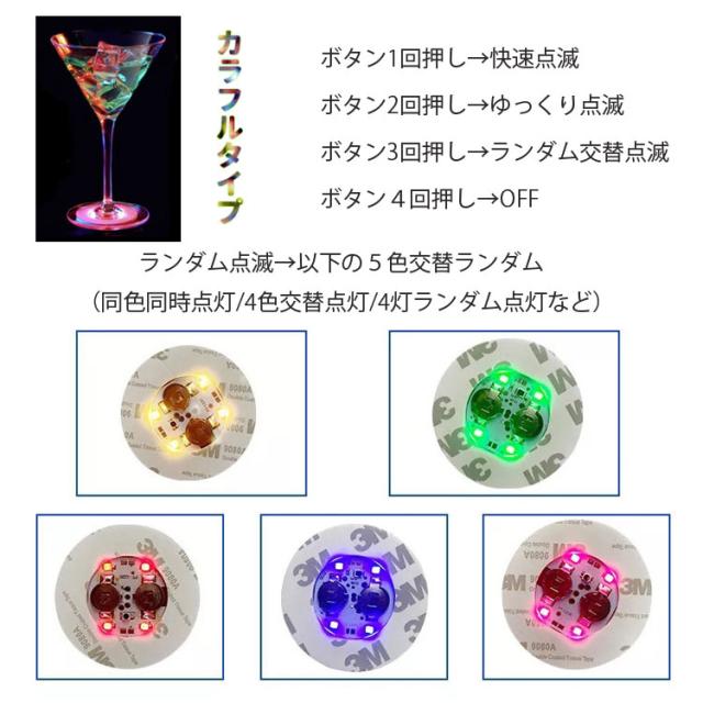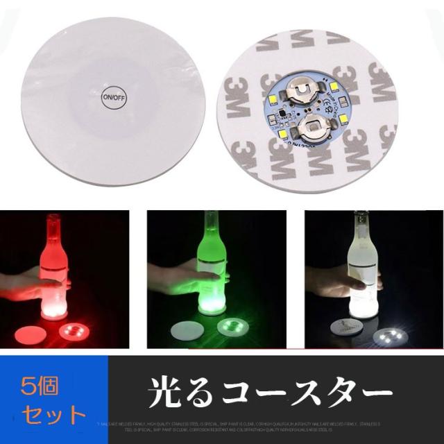 光るコースター 5個セット 光るステッカー 貼り付け 電池駆動 3点灯モード グラス ジョッキ シャンパンボトル クリスマス LEDCST05S