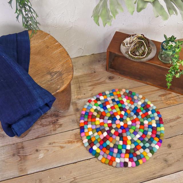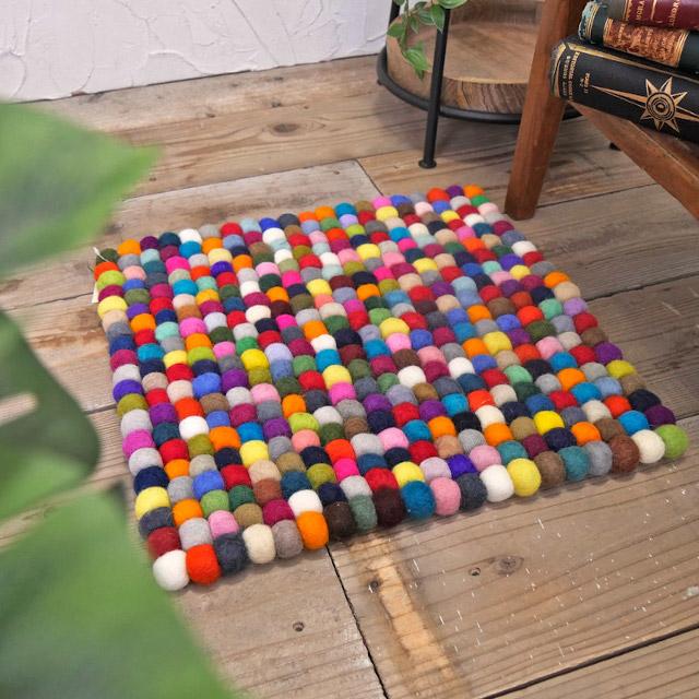 カラフルでポップなフェルト球のマット