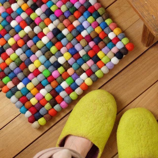 カラフルでポップなフェルト球のマット |