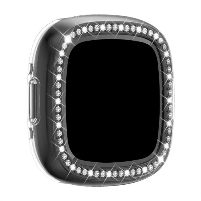 Fitbit Versa4 ケース Fitbit sense2 カバー メッキ / クリア 液晶保護 フィルム一体 可愛い/かわいい/きらきら ラインストーン エレガント 保護ケース/カバー フィットビット ヴァーサ 4/フィットビットセンス2 TPU 耐衝撃ケース/カバー ソフトケース
