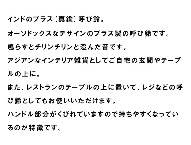 オーソドックスなデザインのブラス製の呼び鈴です。