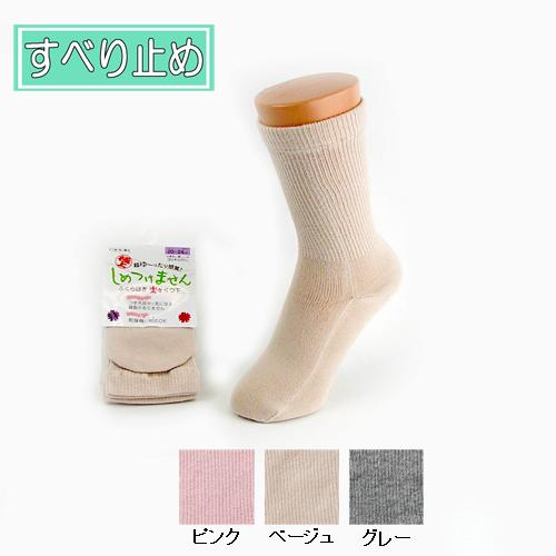 日本製 レディース 婦人用 女性用 名入れ 極上 すべり止めソックス しめつけません ソックス 綿混 靴下 締めつけない ゆったり 履きやすい 靴下 かかと付 クルー ショート丈 大人 おしゃれ オシャレ 介護施設 老後施設 涼しい 夏 春 春夏用 名前を入れる 送料無料 20cm~24cm