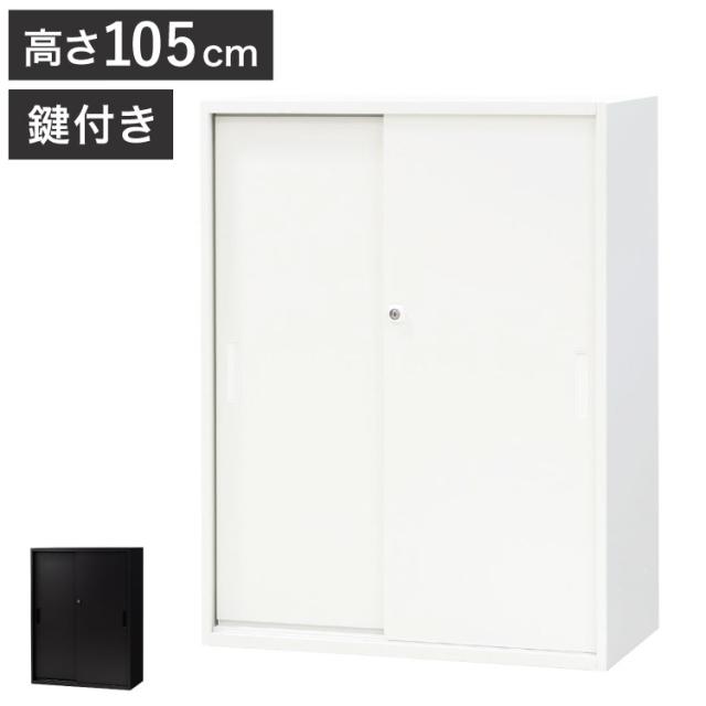 高さ105cm/3段/引き戸キャビネット/鍵付き