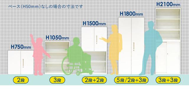 高さ75cm/2段/引き戸キャビネット/鍵付き