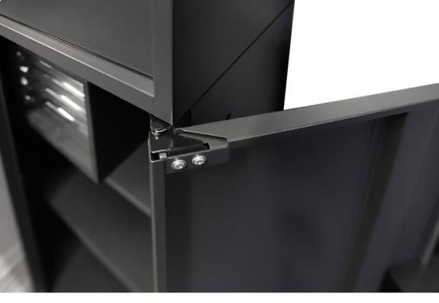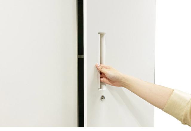 ラッチ機構、250度オープンの扉、細かなピッチの可動棚を搭載した使いやすさ抜群の両開きタイプです。