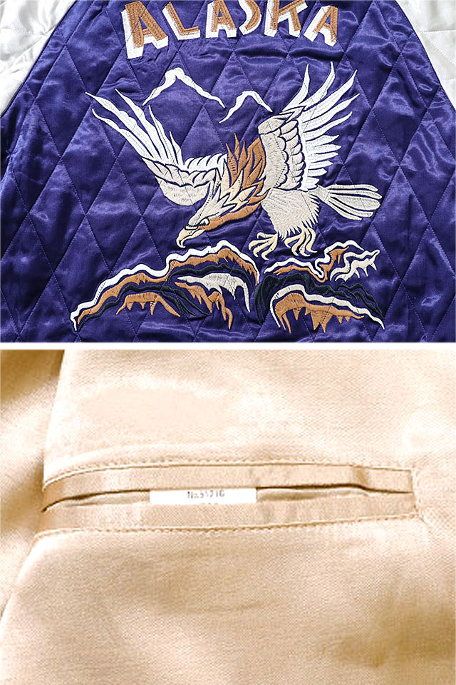 希少価値の高い「アラスカジャン」の鷹柄を採用したレーヨンスカジャンです。